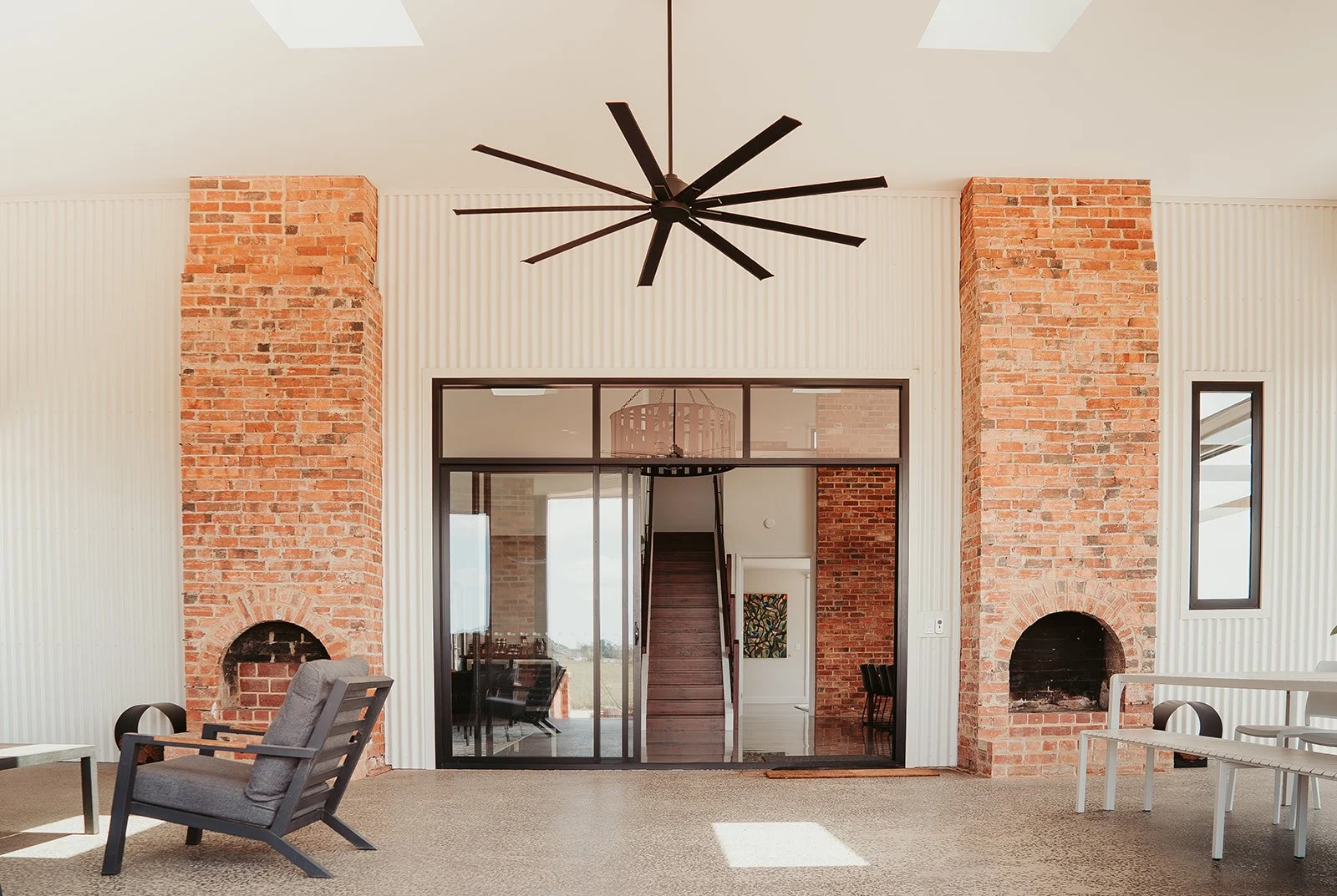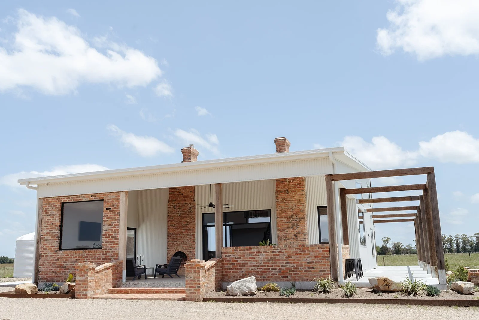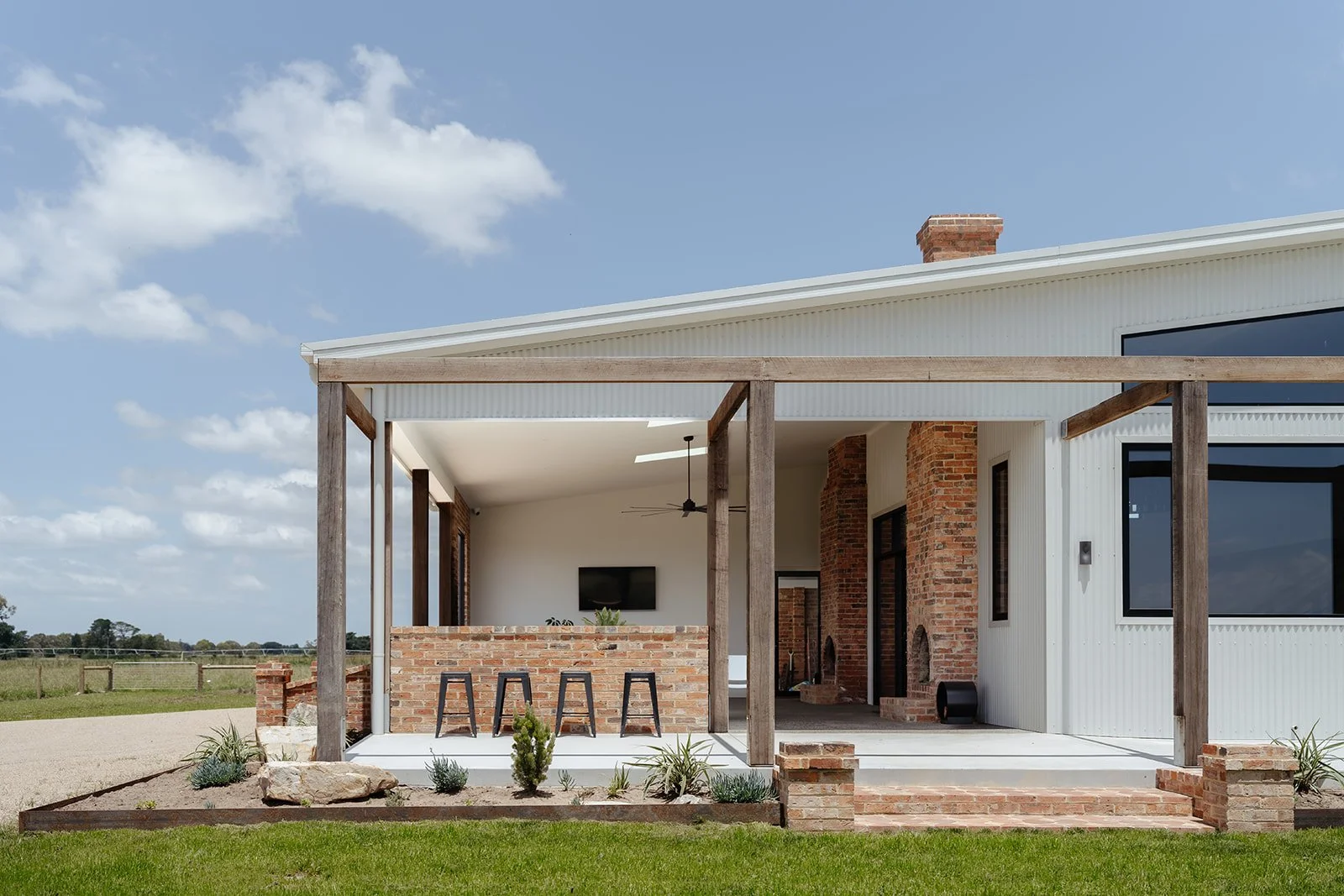 A severely dilapidated 1860’s homestead was crumbling around 2 proud 150yr old brick chimneys that once provided warmth for this original home to the Little Family. There was little to be saved in its original form, however the twin double-sided chimneys were to become the link in the story for a new vision, to design a modern two-storey, 3 bedroom dwelling that had all the warmth of a family home, to be offered as accommodation to showcase the Gippsland Region.